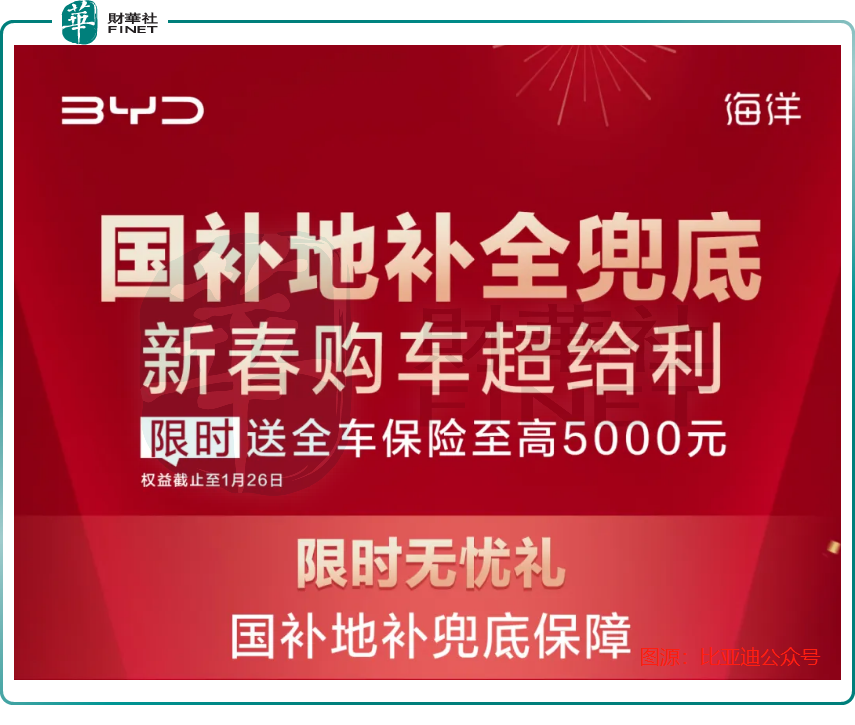 “国补地补全兜底,新春购车超给利”,这是比亚迪(01211.HK)(002594.SZ)近日在一场促销活动中打出的响亮广告宣传语。