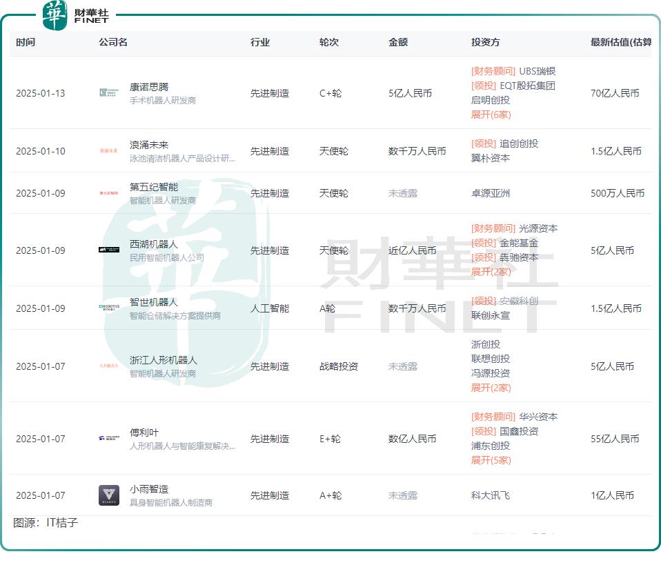 而自2025年以来,机器人产业的融资依然热情高涨。根据IT桔子数据统计,2025年年初以来已有15家机器人相关企业获得融资。
