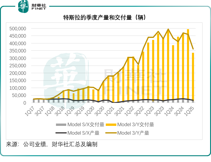 2025年第1季,其汽车总交付量按年下滑12.96%,至33.67万辆,其中售价较高的Model S/X及其他交付量更按年下滑24.35%,至1.29万辆。