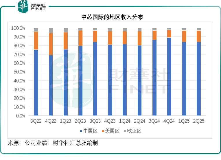 从地区收入来看,中芯国际第2季中国区、美国区和欧亚区的收入占比分别为84.1%、12.9%和3.0%,相比之下,上季的占比分别为84.3%、12.6%和3.1%,环比差别不大,见下图。