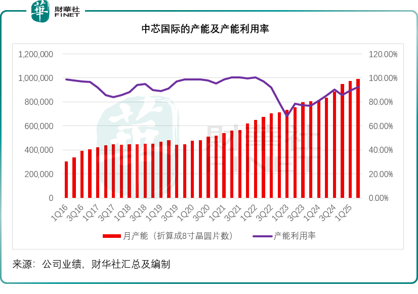 2)产能利用率飙到92.5%,比上季度涨2.9个百分点,8英寸和12英寸产能都更饱和了。到二季度末,月产能已经摸到99.125万片(折合8英寸)。