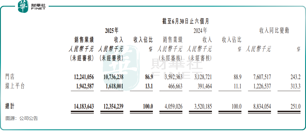 报告期内,老铺黄金门店及线上平台的收入均大幅增长,分别同比增长243.2%及313.3%。