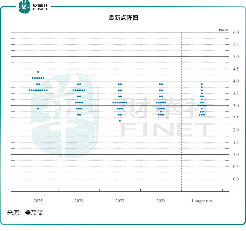 点阵图或意味着到年底时,联邦基金利率很可能处于3.50%到3.75%的区间,比6月的3.75%到4.00%多了一次25个基点的降息,意味着今年剩下的两次议息会议很可能分别降息25个基点(若每次降息服务为25个基点)。