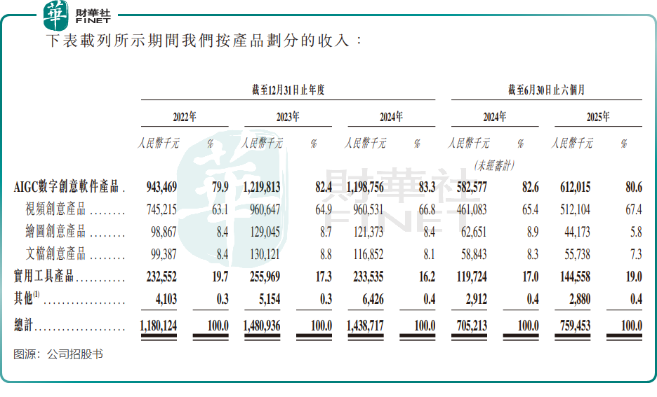 招股书显示,2022年至2024年及2025年上半年,万兴科技的收入分别为11.8亿元、14.81亿元、14.39亿元及7.59亿元。期内利润方面,上述期间分别为6429.2万元、1.08亿元、-1.57亿元及-5471.2万元,2024年全年及2025年上半年均由盈转亏。