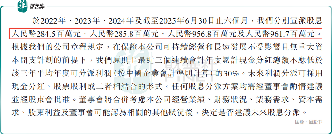 2022年至2024年及2025年上半年,沪电股份分别宣派股息2.85亿元、2.86亿元、9.57亿元及9.62亿元。