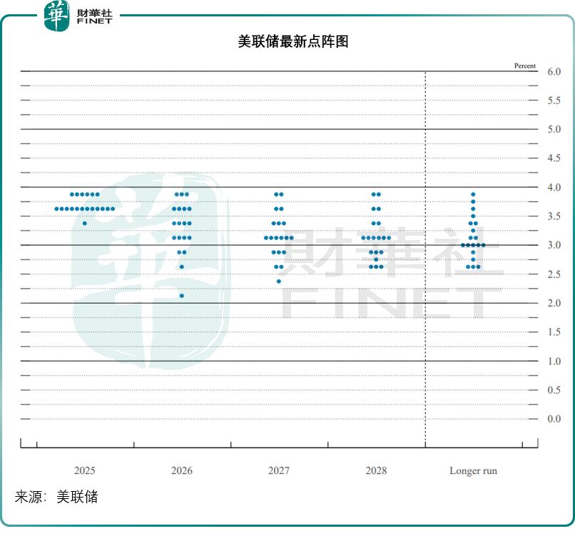 反映官员个人利率预期的“点阵图”显示,预期2026年仅降息一次,2027年再降息一次,之后联邦基金利率将达到约3%的长期目标。这些预测与9月时的更新一致,但点阵图反映出委员会内部在利率走向上存在分歧。