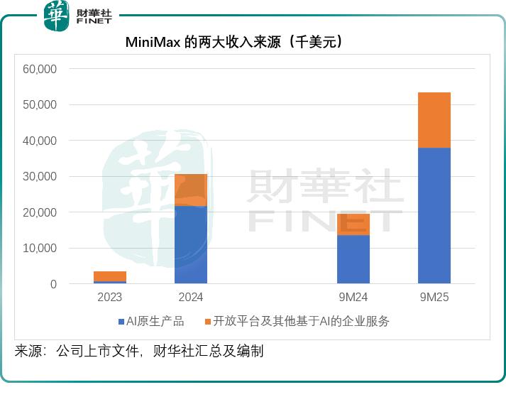 MiniMax的AI原生产品之中,尤以海螺AI(即图像和视频生成工具)和Talkie/星野(即AI原生全模态交互平台)为主要的收入来源,2025年前三季的收入占比分别达到2.6%和35.1%,而企业服务仅占其收入的28.9%。