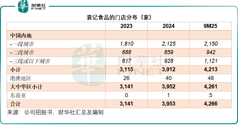 我们留意到,袁记在巩固一线城市的核心阵营同时,加速下沉市场的渗透,三线及以下城市的门店数量于2025年9月末达到1,121家,较年初增长20.80%,相比之下,一线城市的门店数量维持在2,150家的稳定水平,增幅为1.18%。