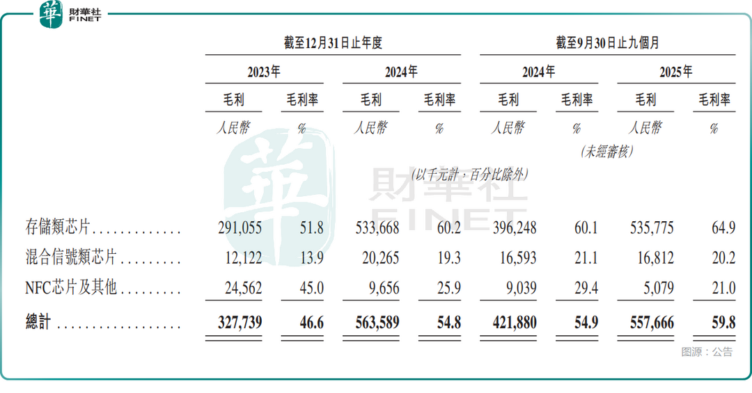 结合毛利率来看,存储类芯片的毛利率也从2023年的51.8%,连续提升至2025年前三季度的64.9%。