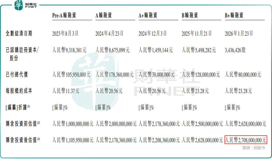 其中,为恒智能于2026年1月完成8000万元融资,投后估值为27.08亿元(人民币,下同)。