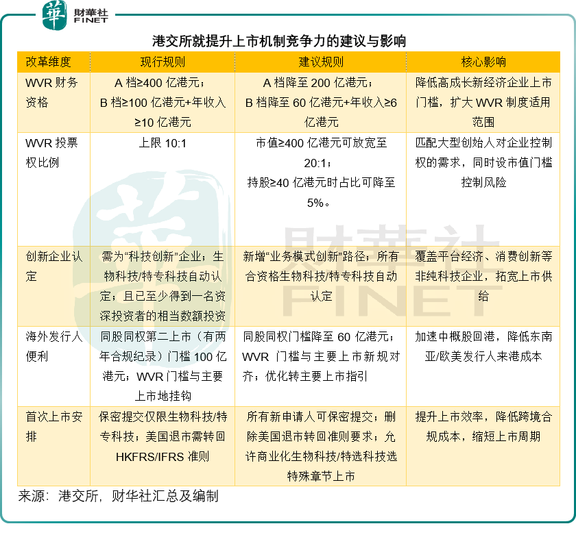 这次咨询文件共提出十项重大调整,覆盖WVR制度、海外发行人、首次上市安排三大板块,核心变化可归纳为以下四类: