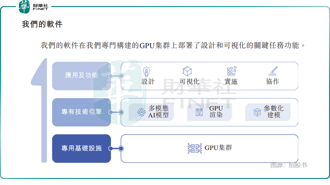 其次是技术闭环壁垒,该公司将GPU云渲染、3D建模、空间大模型、AI生成与工业孪生打通,形成“工具—数据—模型—场景”的完整链路,区别于传统CAD厂商以软件授权为主的模式,也区别于纯AI公司缺乏落地场景的短板。在国内制造业、家居业数字化转型的趋势下,其AI设计、自动化出图、前后端一体化能力具备真实行业需求。