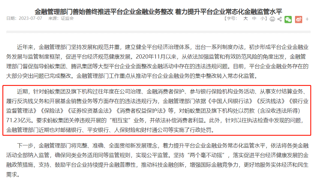 蚂蚁金服、支付宝、微众银行、财付通、平安银行、邮政银行、人财保险等大型金融企业一起被罚,它预示着,对互联网金融机构的反垄断调查、违规处罚正式告一段落了。这就像滴滴、美团一样,在被罚过后,重新稳固了行业地位。