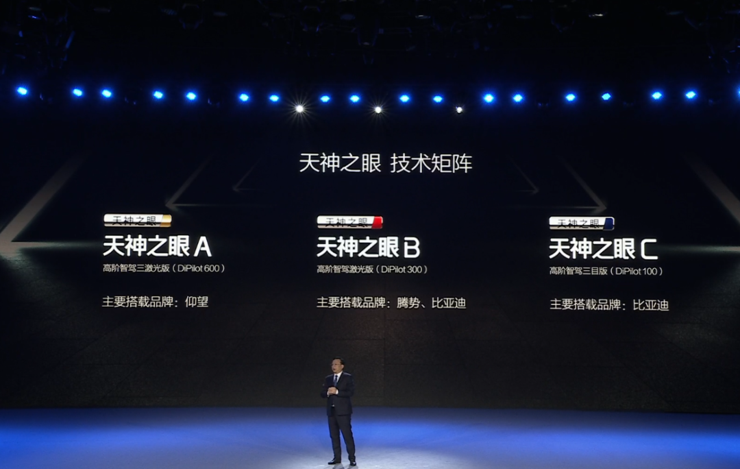 20万以上的车型则是主要搭载“天眼之神B”,它增加了1颗或者2颗激光雷达,采取激光雷达与摄像头的组合方案。这也是高端智驾车型的主流技术方案。像华为智驾、理想智驾、蔚来智驾等,都搭载了激光雷达。“天神之眼B”主要就是配置腾势品牌和比亚迪汉、唐等中高端车型了。