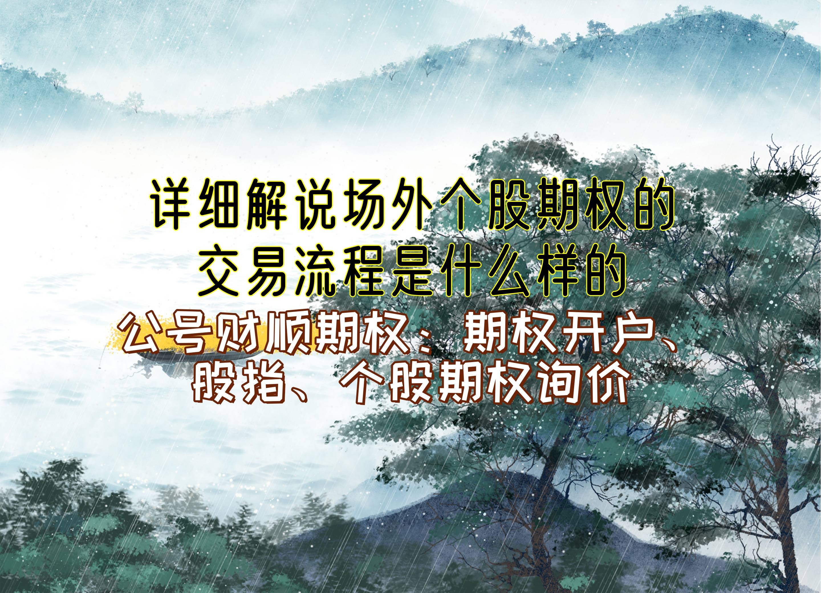 财顺小编本文主要介绍详细解说场外个股期权的交易流程是什么样的?场外个股期权的交易流程相对复杂,涉及多个环节和步骤。图文来源:财顺 期权