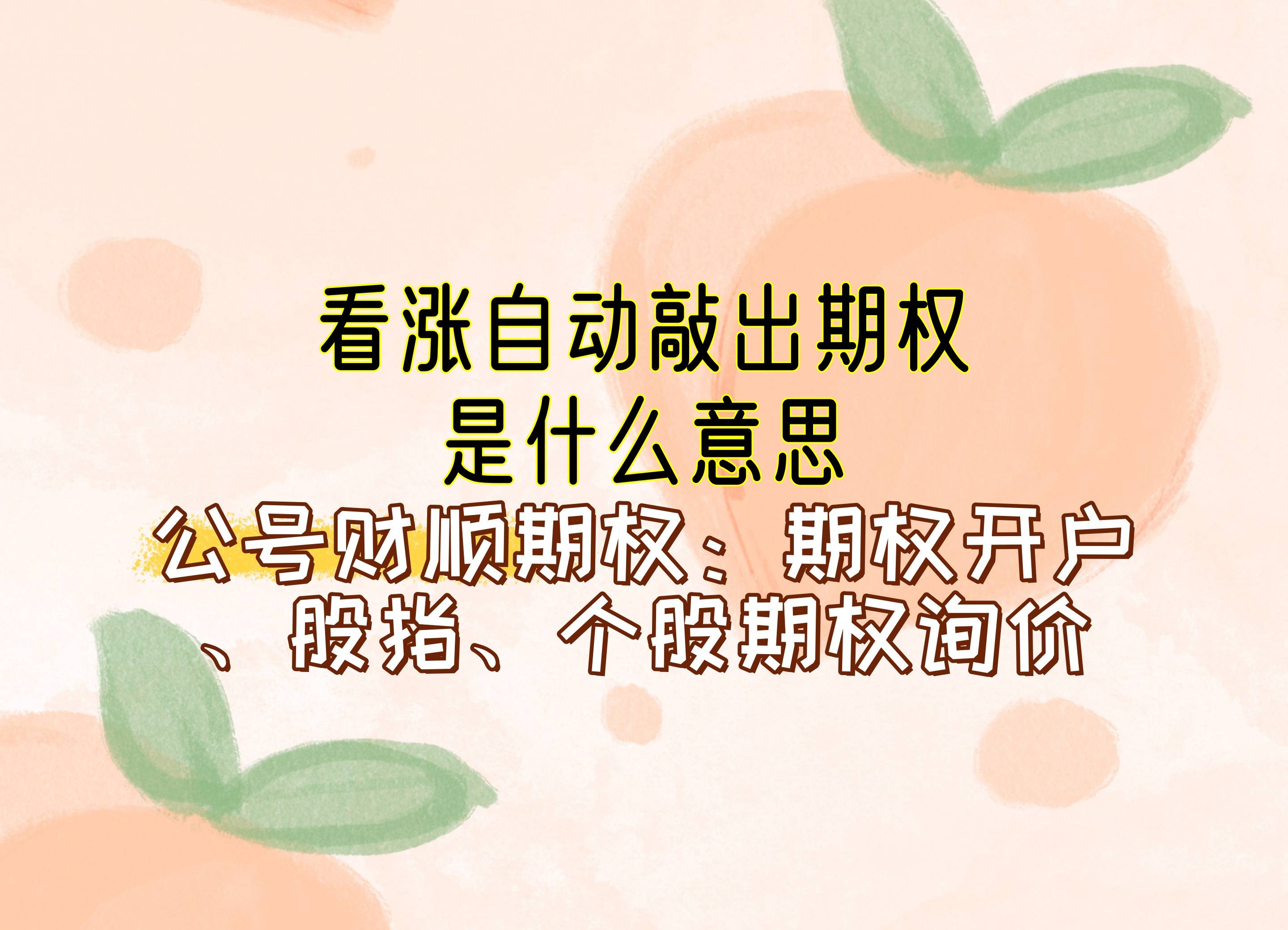 小结:以上就是看涨自动敲出期权是什么意思?希望对各位期权投资者有帮助,了解更多期权知识内容。