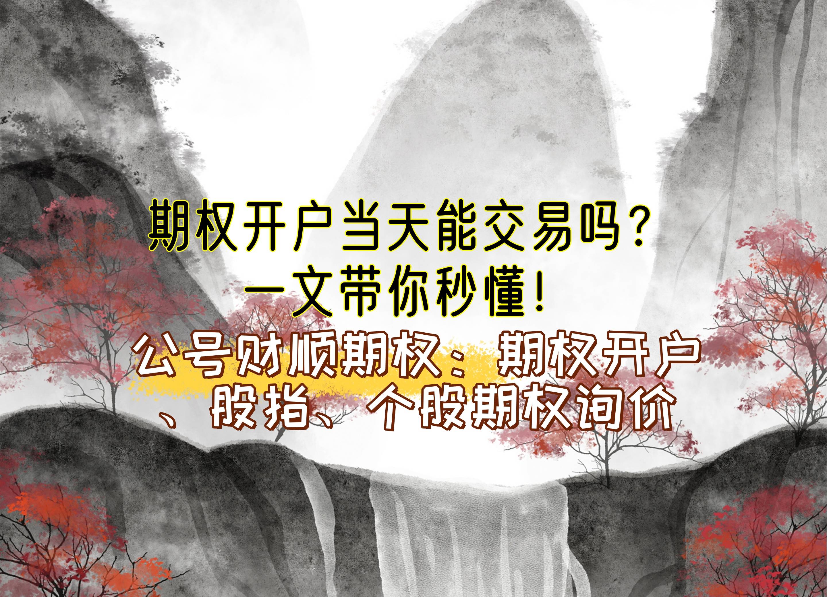财顺小编本文主要介绍期权开户当天能交易吗?一文带你秒懂!期权开户当天通常不能立即进行交易,期权开户当天通常不能立即进行交易,需要等待账户审核通过后才能开始交易。图文来源:财顺 期权