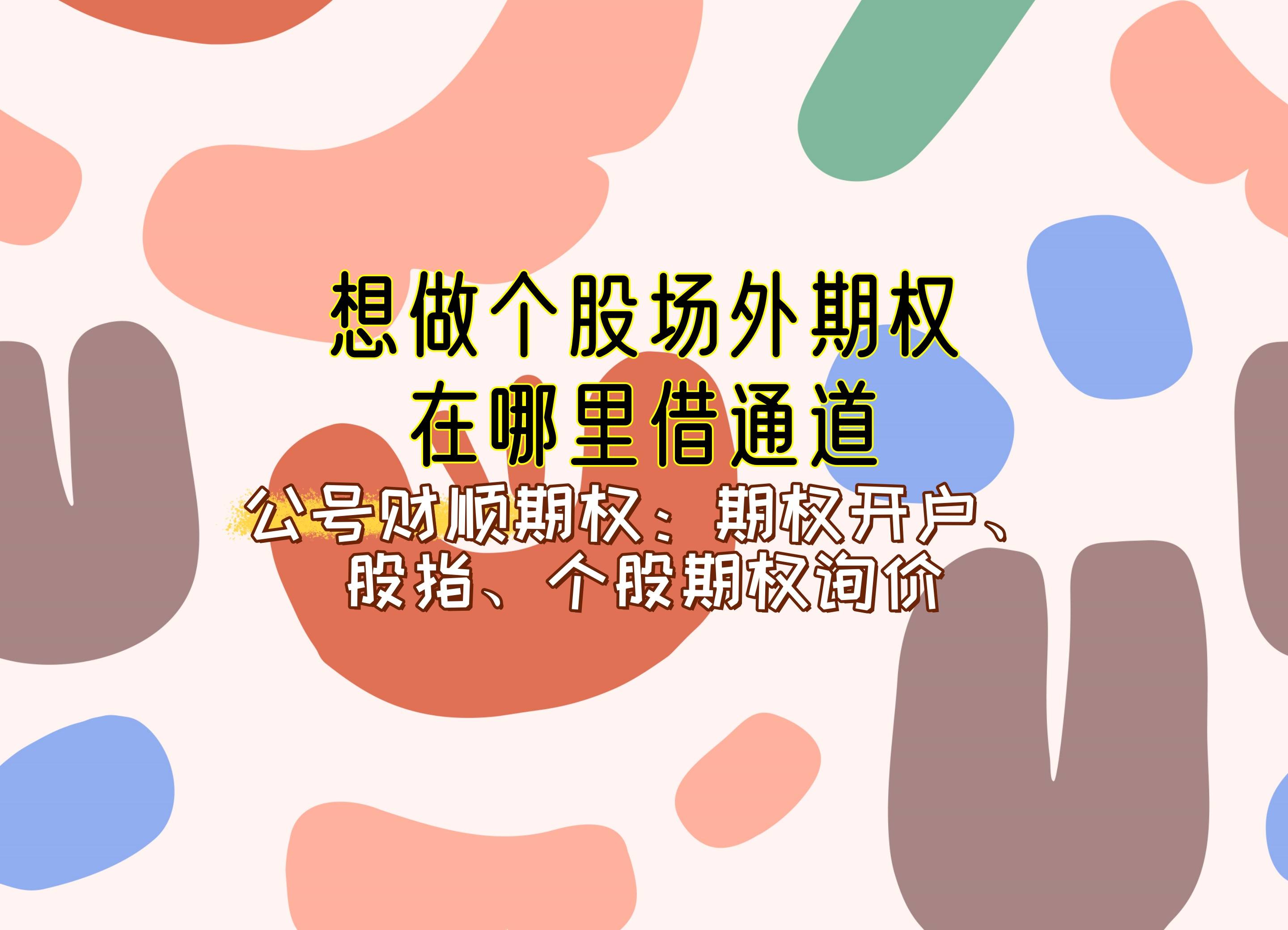财顺小编本文主要介绍想做个股场外期权在哪里借通道?个股场外期权(OTC Option)的交易需通过具备场外期权业务资质的机构作为通道,且需严格遵守国内监管规定。图文来源:财顺 期权