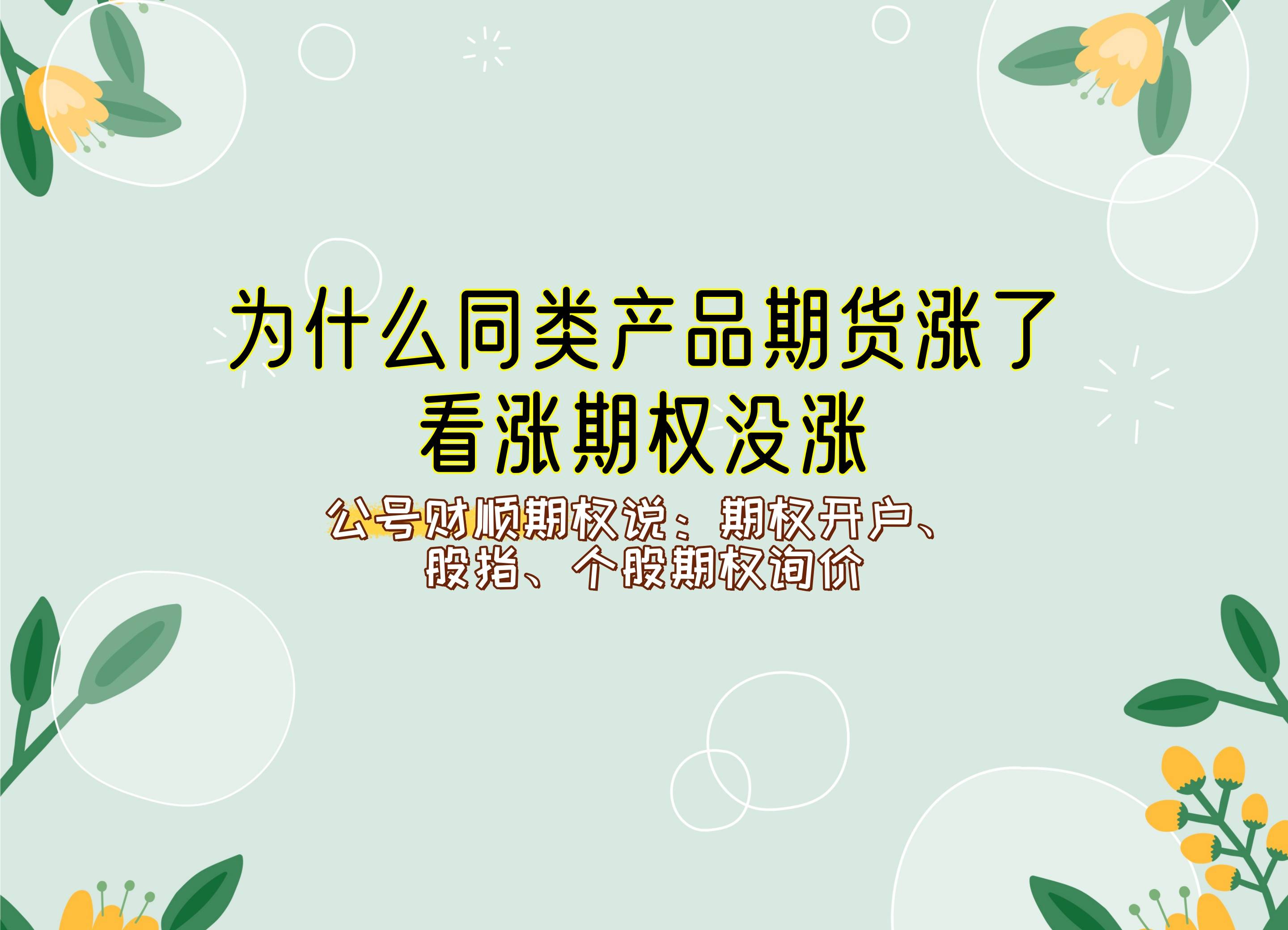 小结:以上就是为什么同类产品期货涨了看涨期权没涨?希望对各位期货投资者有帮助,了解更多期货知识内容。