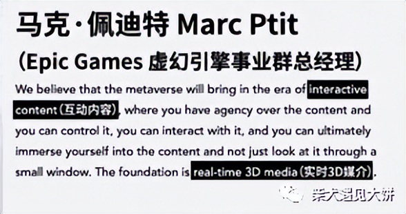 ②数字孪生,能够把现实世界镜像到虚拟世界里面去。这也意味着在元宇宙里面,我们可以看到很多自己的虚拟分身。