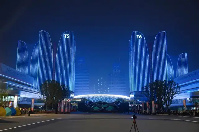 可以看到,六区更深层的变化在于生态协同的开始显现。六区的核心是从传统“世界超市”升级为“复合生态综合体”。它围绕科技感十足的“数贸港”核心,融合了市场、商务与生活功能:东侧为大型展会与市场,西侧规划酒店、公寓、商业街区及幼儿园等生活配套,通过高效连廊无缝衔接。