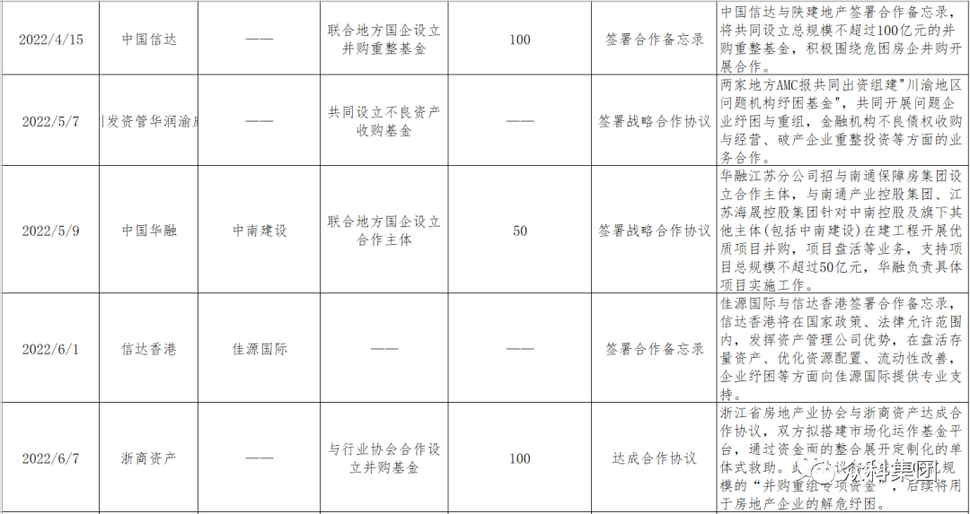 最近一周,又有多家全国性AMC及地方AMC宣布与房企合作进行纾困。