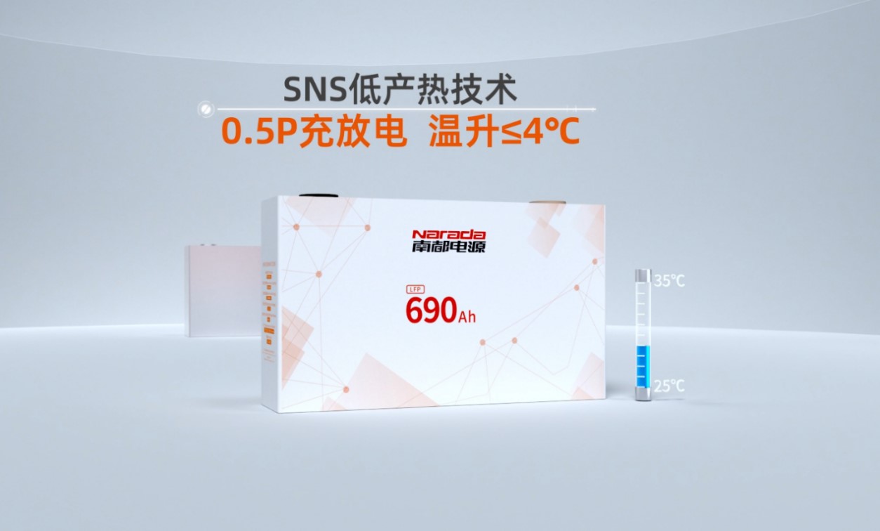近日,南都电源展示了其690Ah超大容量电池,该电池拥有20年超长寿命,体积能量密度达380-440Wh/L,循环寿命高达15000次,单体能量超过2度电,能量效率超96%,同时实现了系统五年“零”衰减。新品储能电池基于690Ah尺寸规格,可兼容650Ah至750Ah的容量。搭载该款电池的20尺储能系统容量可达6MWh。