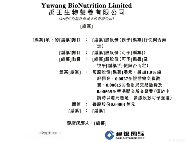 近日,禹王生物营养有限公司(简称“禹王生物”)向港交所提交了上市申请书,拟在港交所主板上市,联席保荐人为招银国际和建银国际。