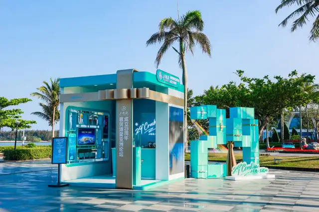 在博鳌亚洲论坛的户外区域,一个以“打开的礼物”为设计灵感的快闪空间吸引了众多目光。空间紧扣“29°五粮液·一见倾心”主题,巧妙融入了29个成员国标志性建筑剪影。这种设计并非偶然——博鳌亚洲论坛拥有29个发起国,五粮液将这一数字转化为具象的视觉语言,完成了一次“礼赞”心意的表达。