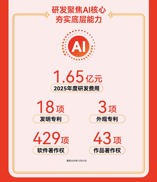 在推动各项重点业务持续提升竞争力的同时,AI能力在公司内部的全面覆盖,也进一步带动了组织管理的智能化升级。2025年,公司各业务板块和职能部门均结合自身特点引入AI相关应用,通过“岗位+AI”的方式持续优化工作流程及人员结构,不仅提升了精细化管理水平,也有效降低了管理成本。报告期内,公司销售费用和管理费用的显著下降,也体现出公司在AI应用、流程优化和精细化管理方面取得的成效。