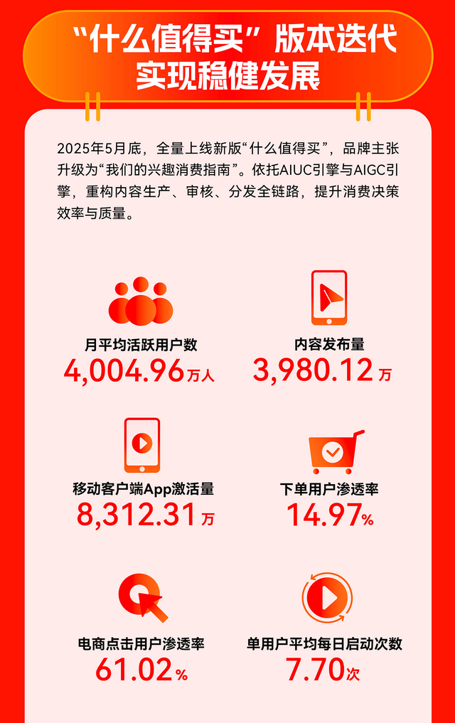 2025年5月,值得买科技核心产品“什么值得买”正式升级为第二代产品,基于AI进行全网消费内容的收集、理解与生成,进一步提升兴趣内容对目标用户的触达效率,打造“AI驱动的全网兴趣消费指南”,品牌主张也同步升级为“我们的兴趣消费指南”。这既是对“兴趣引领消费”市场趋势的积极回应,也是公司将AI能力深度融入核心产品、重塑业务价值的重要一步。