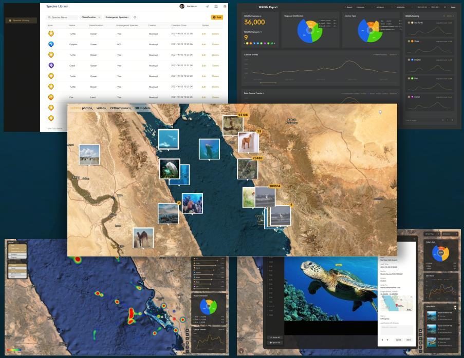 为响应沙特2030年愿景,商汤沙特SenseTime MEA在此打造全球首个AI赋能的一站式可持续生态智能平台——“AI Eco-360生态全景分析平台”(AI Eco-360 Analytics Platform,以下简称“AI Eco-360平台”),全面整合天空、陆地和水下环境生态系统中50余种环境与生态指标的实时数据,为沙特红海地区提供360度全景监测与智能分析管理,为决策者提供可实践、可持续的发展建议,全方位支持生态保护与资源管理,助力沙特阿拉伯的绿色可持续、高水平发展。