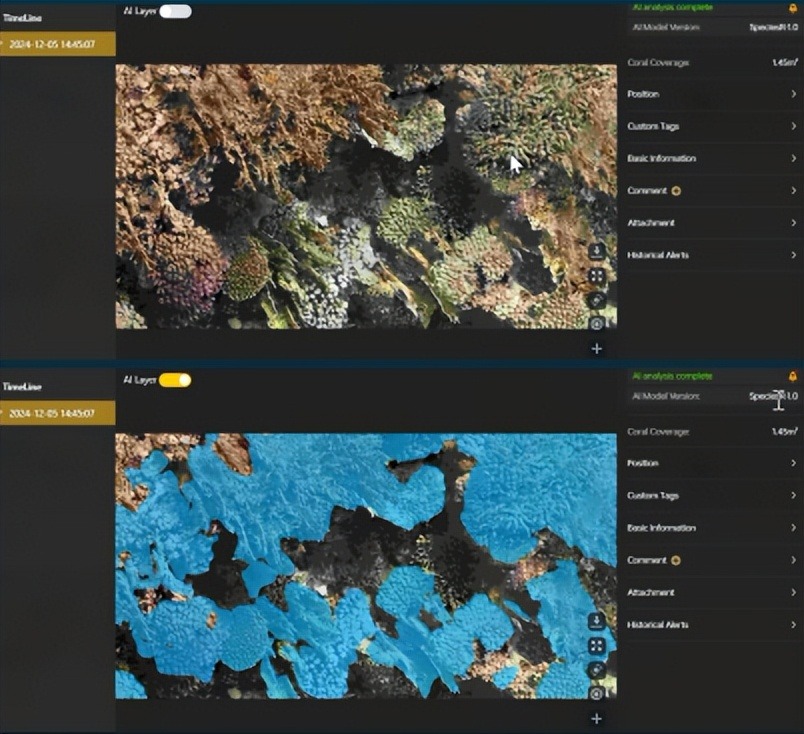 AI Eco-360平台同时也是全球首个分辨率达5毫米的珊瑚礁3D数字孪生系统,拥有多场景预测模型,能够提前预警红潮事件,辅助珊瑚保护者科学决策,及时予以响应和处置,应对生态威胁。