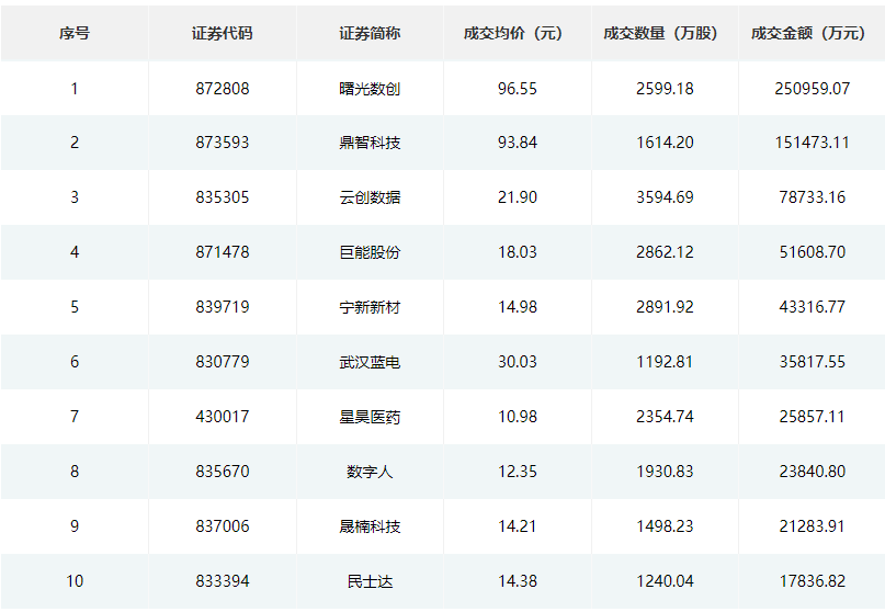 (5.29-6.2北交所成交金额前10的股票)