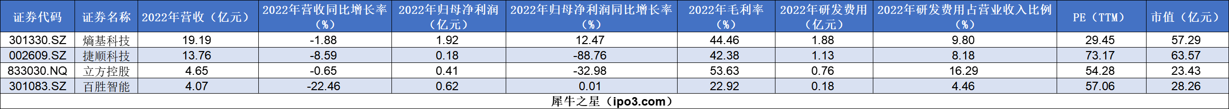 同行业可比公司包括捷顺科技、熵基科技、百胜智能。
