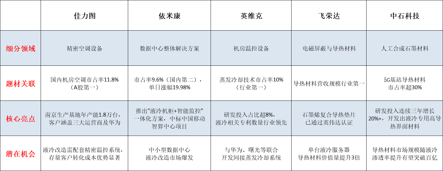 液冷技术从可选变成必选,这两类企业可能成为最终赢家,一是系统集成商(如英维克、佳力图),二为具备整体解决方案能力的关键材料商(如飞荣达、中石科技):
