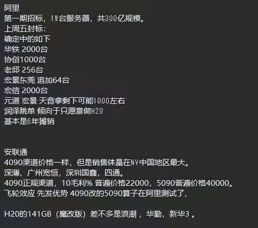 终于传了数周的小作文,在上周几个大额的算力订单公告中落实了一部分,三家公司订单细节都指向阿里之前传出的万台算力租赁项目: