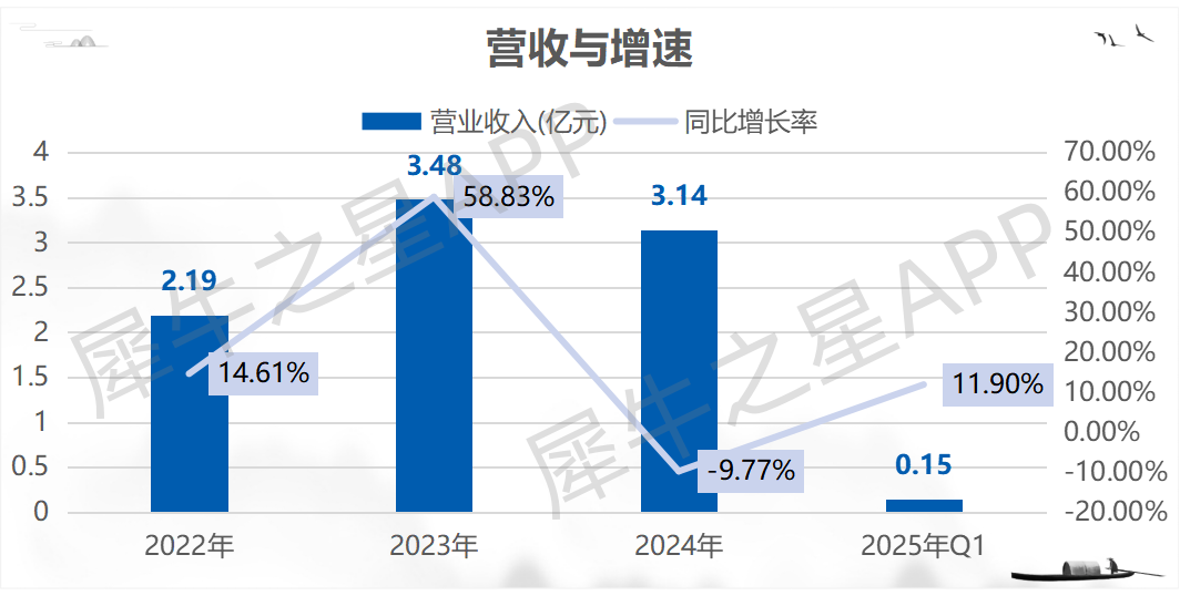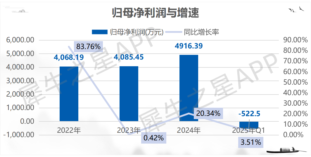 业绩方面,2022-2024年,长江能科的营业收入分别为2.19亿元、3.48亿元、3.14亿元,CAGR达19.74%;同期,长江能科归母净利润分别为4068.19万元、4085.45万元、4916.39万元,CAGR为9.93%。2025年Q1,公司营收为0.15亿元,与上年同期相比增长11.90%;同期归母净利润为-522.5万元。
