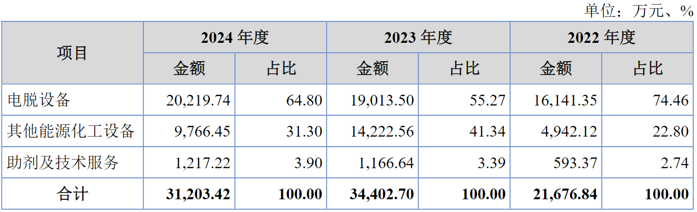 从营收结构来看,电脱设备为公司主要营收来源,近三年占比均超过50%;其次是其他能源化工设备,主要包括存储设备、分离设备、换热设备等设备。其他能源化工设备营收从2022年的4942.12万元增长至2024年的9766.45万元,CAGR达40.58%,呈现良好的增长势头,主要系:一方面,公司持续加大研发投入,丰富产品矩阵,新产品大型换热设备、脱氧塔、气体