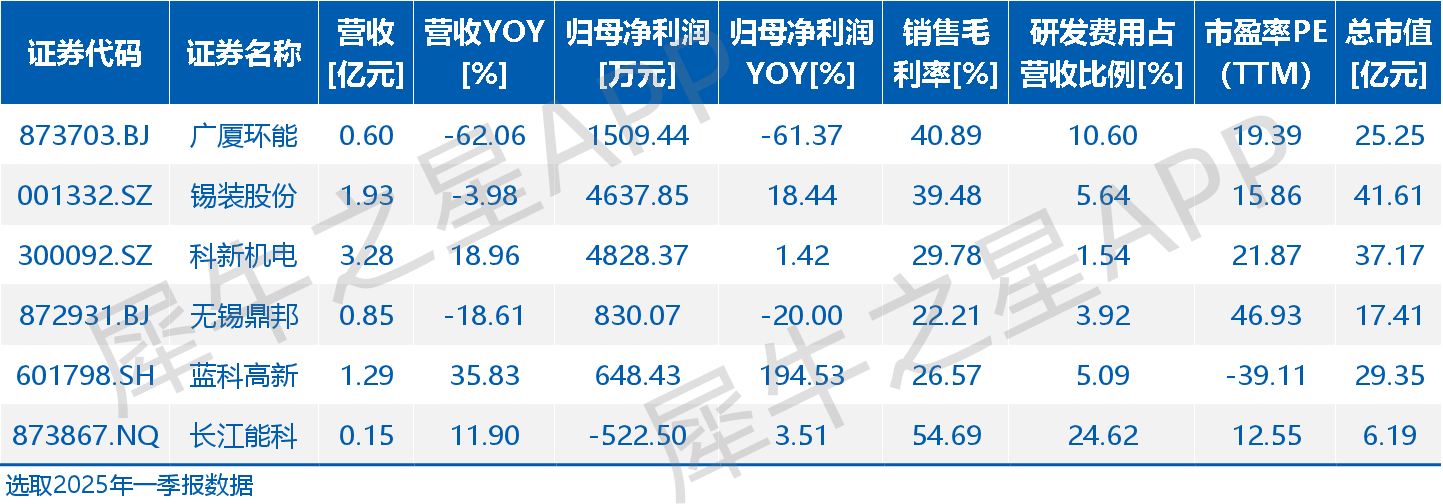 同行业上市公司方面,选取广厦环能(873703)、锡装股份(001332)、科新机电(300092)、无锡鼎邦(872931)、蓝科高新(601798)为可比公司。