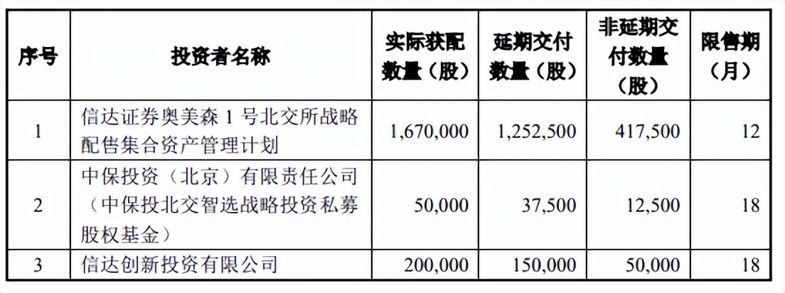 在已完成缴款的战略配售环节,奥美森引入信达证券奥美森1号北交所战略配售集合资产管理计划、中保投资(北京)有限责任公司(中保投北交智选战略投资私募股权基金)、信达创新投资有限公司、湖州中纳竹石股权投资合伙企业(有限合伙)等16家战投。