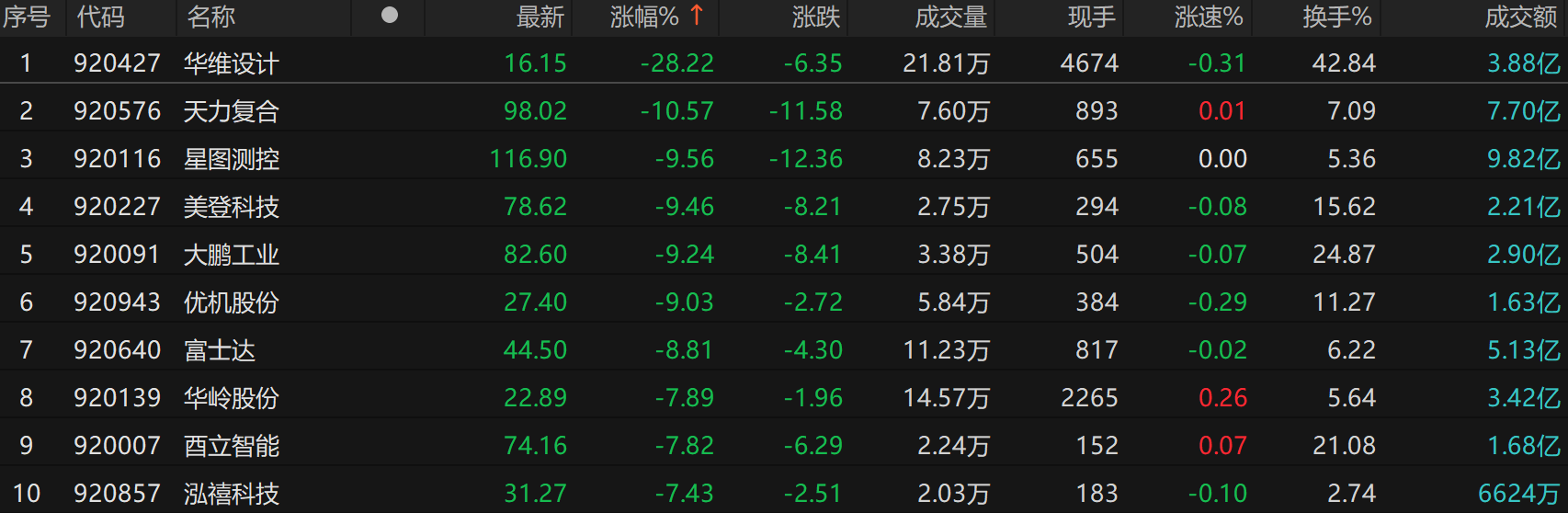 跌幅排行方面,华维设计跌28.22%居首,天力复合跌10.57%次之。