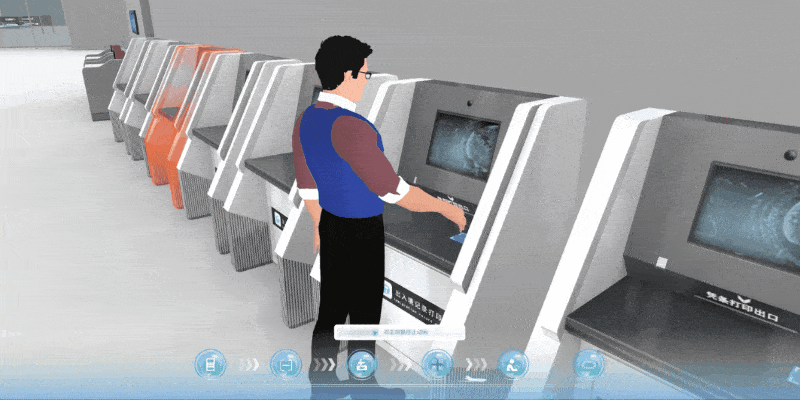 民航安检部门正在推行数字化建设,例如“一码通关”和“OneID”刷脸过检。为此,图扑民航机场开发了许多新的工具,例如“自助值机”、”安检可视化“和“快速乘机”全流程旅客乘机可视化建设,以优化整个乘机过程。作为一个基于 HTML5 的 2D、3D 图形渲染引擎,图扑软件 HT 可以应用丰富的动画展现形式,已经搭建了自助值机、乘机安检、检票登机等三维动画。