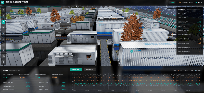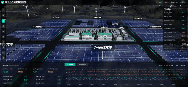 图扑数字孪生的新一代的电网友好型新能源示范电站可视化系统。通过风光储协同优化控制,实现了多种网源交互模式,包括指令跟踪、顶峰供电和系统调峰,最大化消纳利用新能源。