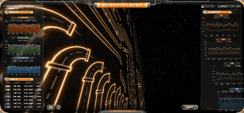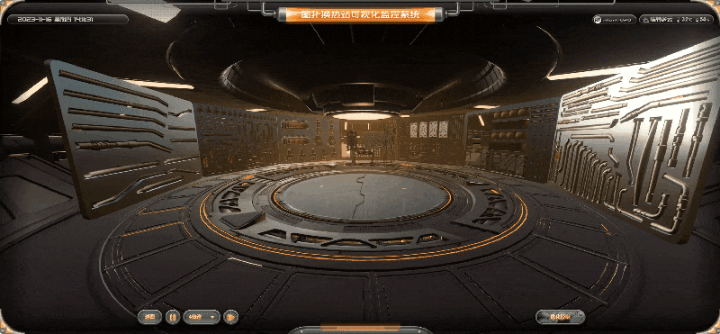 图扑软件 HT 强大的渲染引擎,加之稳定的建模技术,以创意科技的风格呈现供热换热站的设备和场景,营造出充满科技未来感的场景,给予观众强烈的视觉冲击。此外,系统还能准确显示各供热源头和供热终点的温度信息,帮助运营人员实时监测、诊断故障、优化能效。通过应用 GIS、2D/3D 组态、BIM 等可视化应用,实现换热站的智慧供热和节能减排的目标。