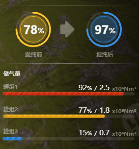 储气量:全厂所有罐组储气量以百分比形式展示。