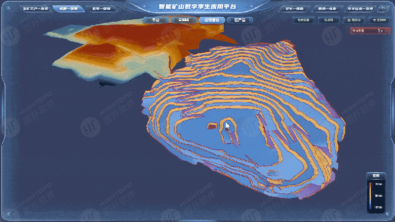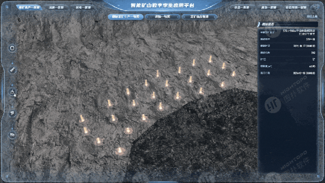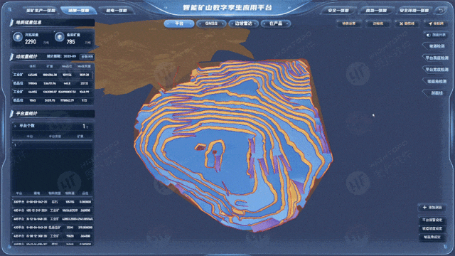 依托图扑 HT 三维可视化技术,深度融合采剥生产、运输调度、资源储量等核心业务,一屏呈现采剥总量、设备工况、矿石品位等 20 余项关键指标,同步展示配矿计划执行进度与人员定位轨迹,实现矿山生产全流程动态监测与精细化管理。