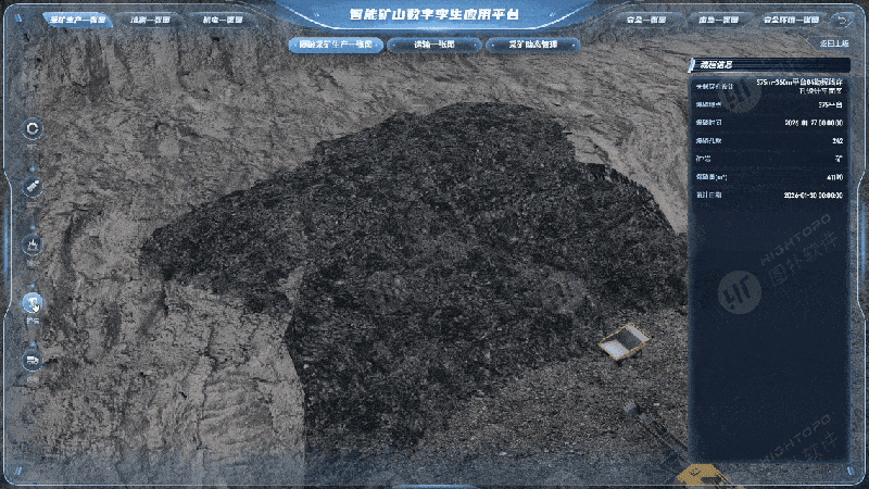 本模块可精准呈现爆破周计划的爆堆区域与作业顺序,确保护爆破作业高效、有序推进。同时,通过可视化形式完整还原矿石从爆破、铲装至运输的全工艺流程,清晰拆解各环节的衔接逻辑,实现生产过程的透明化与可追溯。最终为现场作业协同与管理决策提供直观、科学的数据支撑,全面赋能采矿生产实现高效、有序运行。