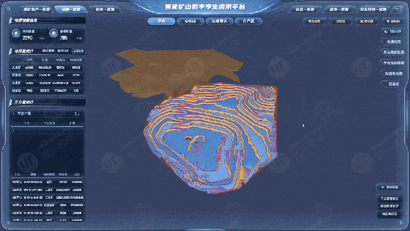 聚焦矿山机械车辆调度与运营优化,实现对铲车、矿卡等设备工作时间、工作量、运行状态及实时位置的全维度实时监控。通过三维可视化技术,在数字孪生场景中实时呈现车辆分布与位置信息,支持设备出勤统计、配矿计划跟踪、调度计划详情查询,为操作人员绩效管理提供精准数据支撑,助力管理者实现车辆调度智能化与最优化,大幅降低矿山管理对人工的依赖,实现调度运营效率最大化。
