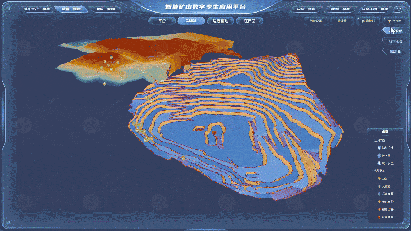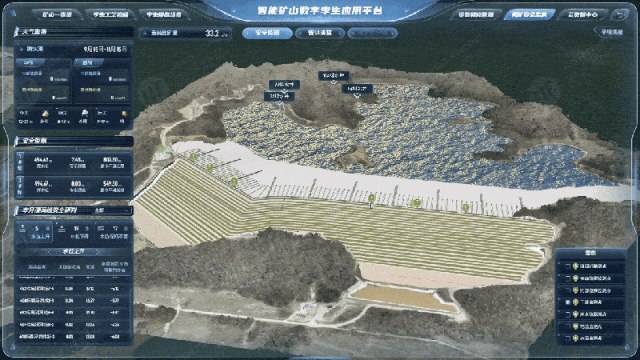 平台以图扑软件 HT 数字孪生技术为支撑,构建应用标准体系、管理系统、开发服务、数字资产建模、应用场景五大板块的完整架构,实现 20.8 平方公里矿区全要素毫米级数字化复现,覆盖矿区一张图、设备运维、工艺流程、尾矿安全、人员定位等全场景管控。依托多源数据整合与三维可视化技术优势,平台打通生产、安全、运维全业务链路,具备实时监测、智能预警、模拟推演、远程协同等关键能力,助力矿山实现“一矿一图、以图管矿”的智能管理模式,提质降本、筑牢安全环保防线。